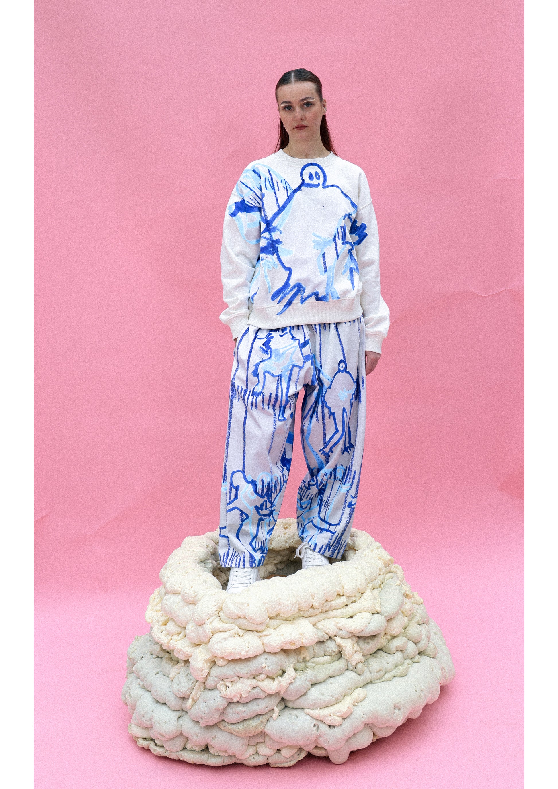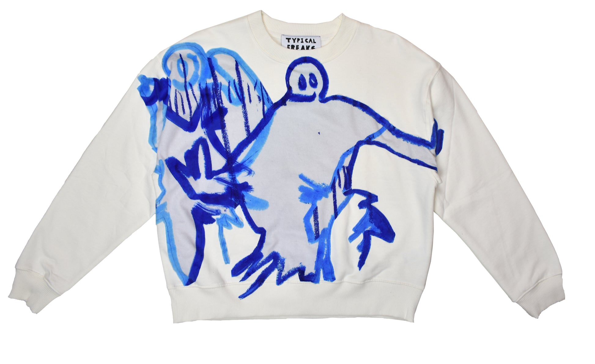 White Sweatshirt with appliqued, velvet print detail to front.