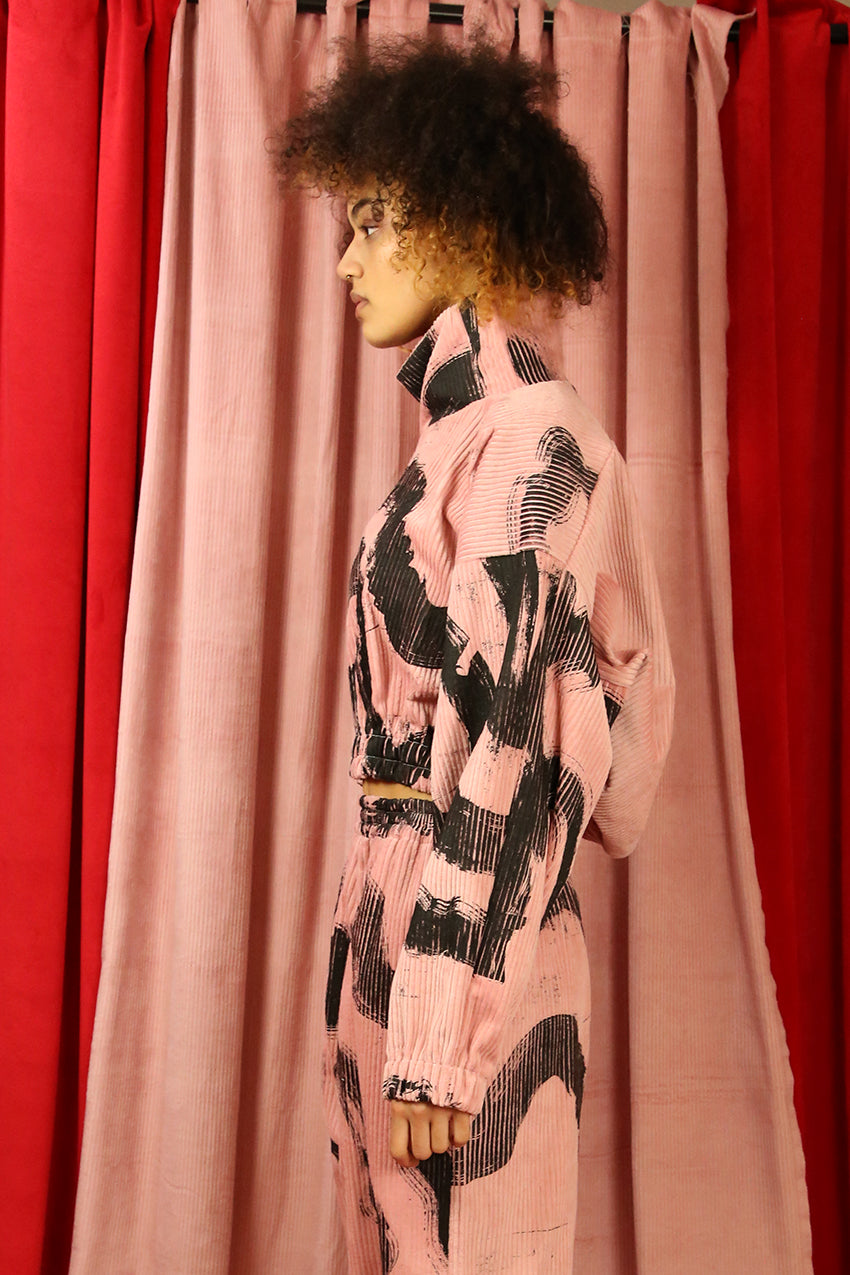 Slouchy, relaxed construction, slightly cropped fit and wide sleeves with elasticated cuff. Loose fitting high neck.