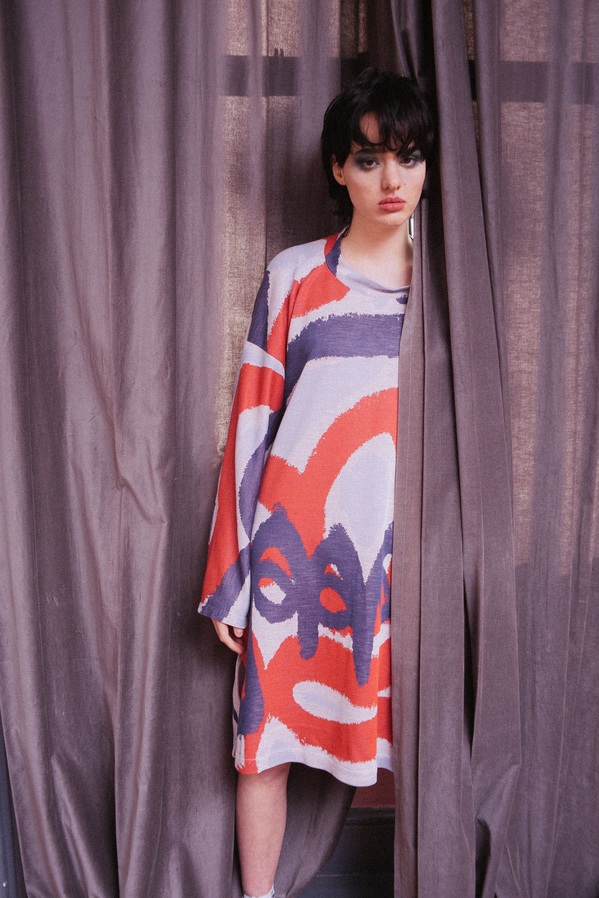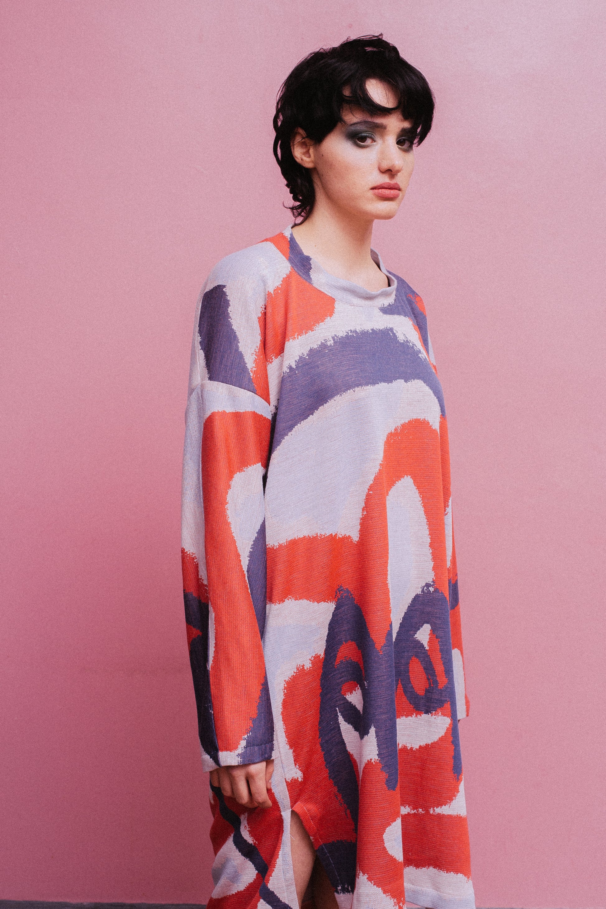 Effortless and comfy burst of colour. This dress can be worn with trousers or by itself.