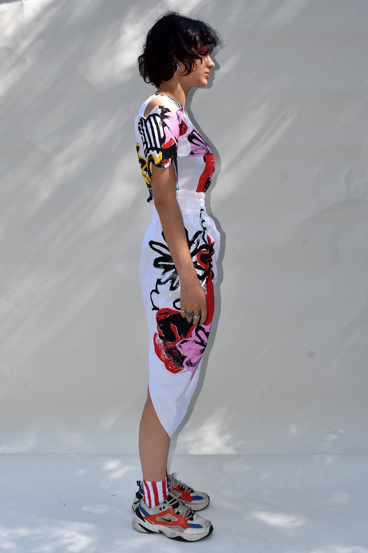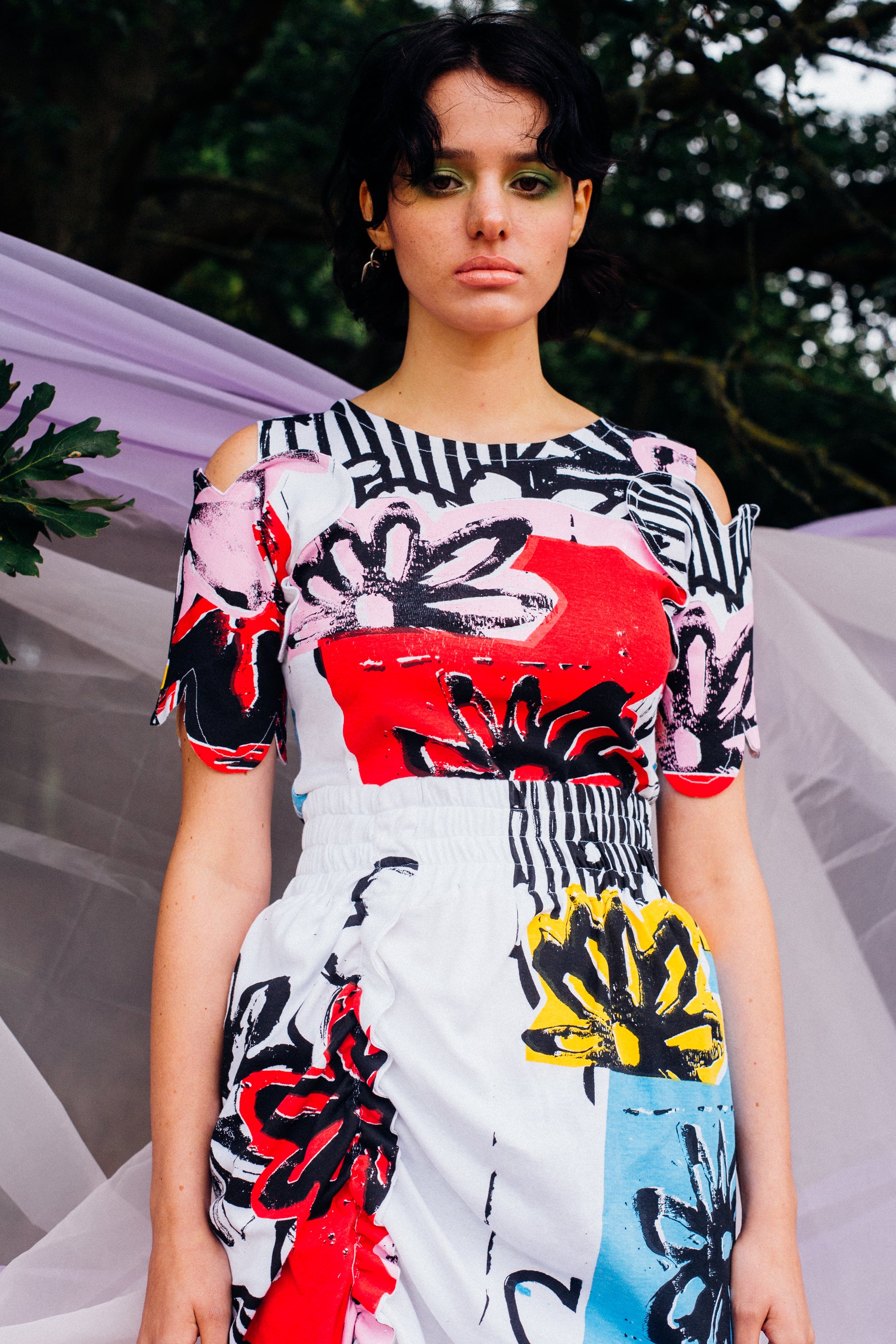 The Flower Show top is one of the standout pieces form the collection. The bold screen printed pattern evokes themes of Pop Art and collage.