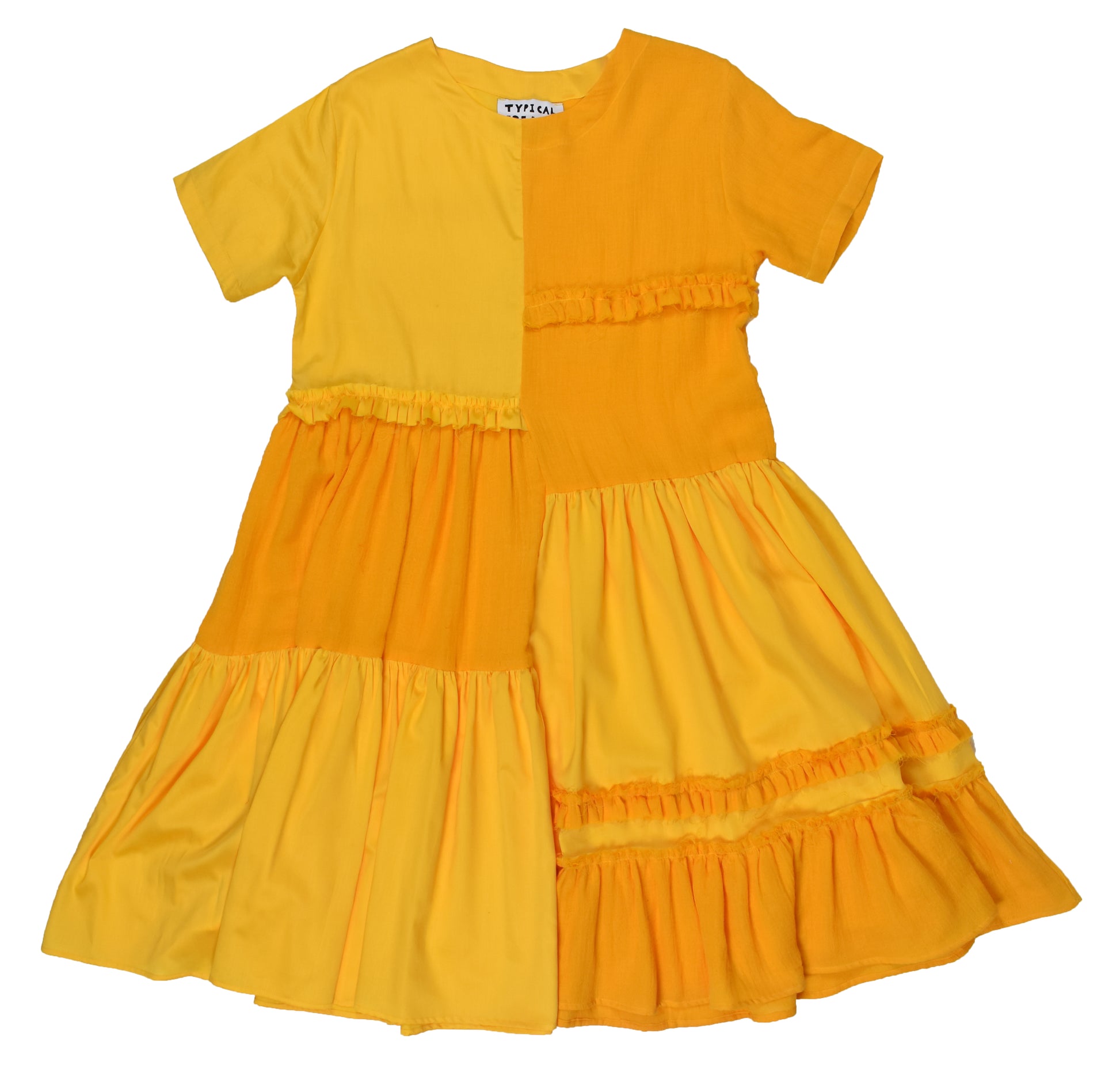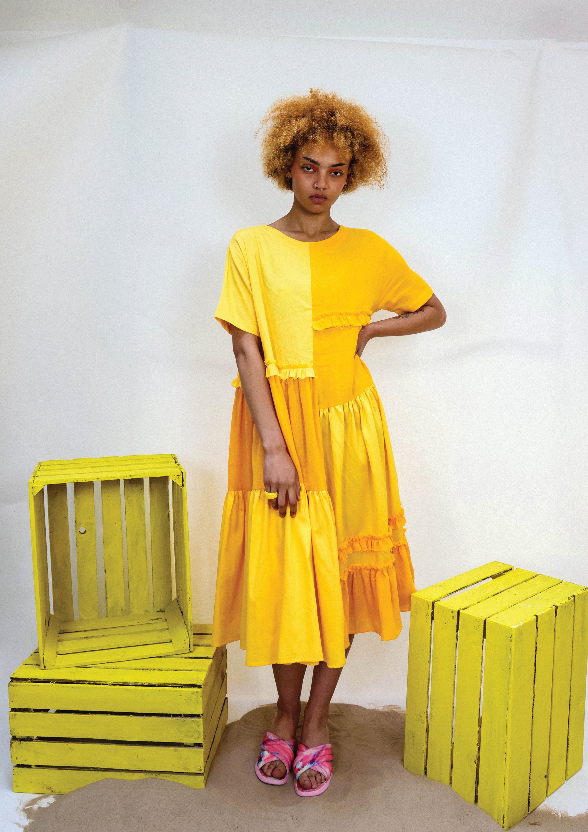 Experience the ultimate comfort and style with our Happy Dress. Made from layered organic cotton muslin and cotton satin, hand-dyed in bold yellow hues.