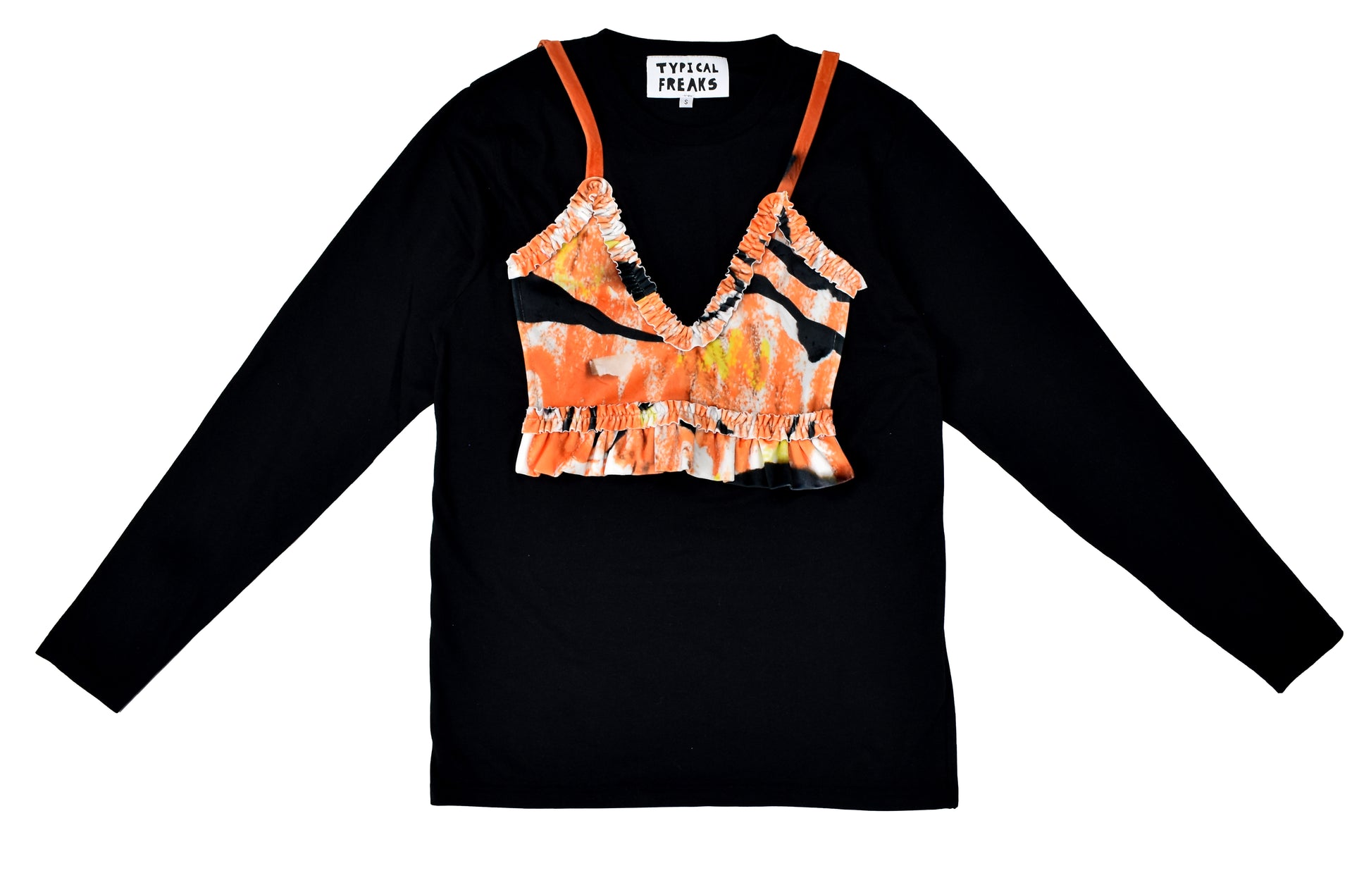 Designed to create the illusion of just wearing a bralet, it features a printed tiger stripe collage.