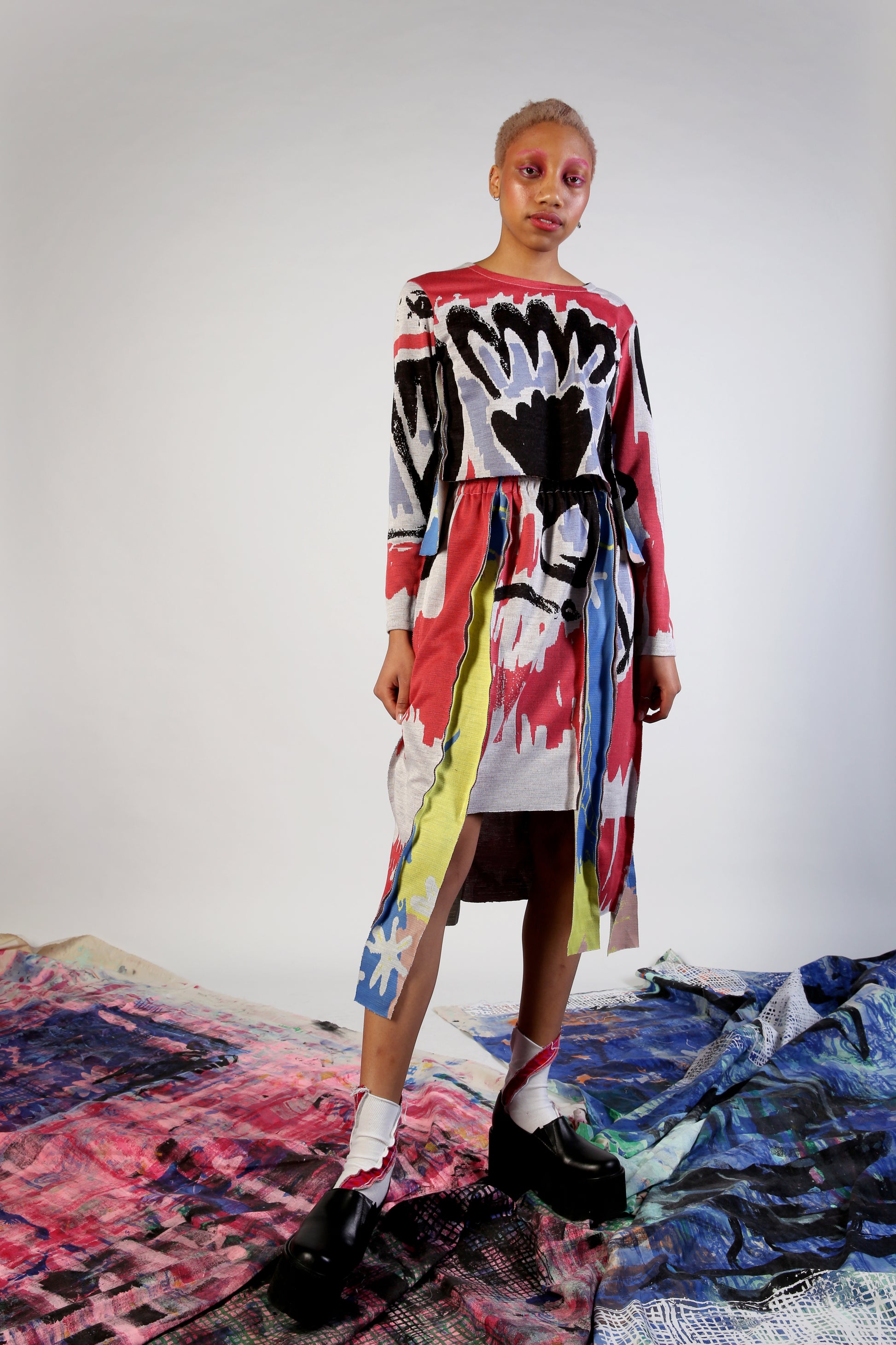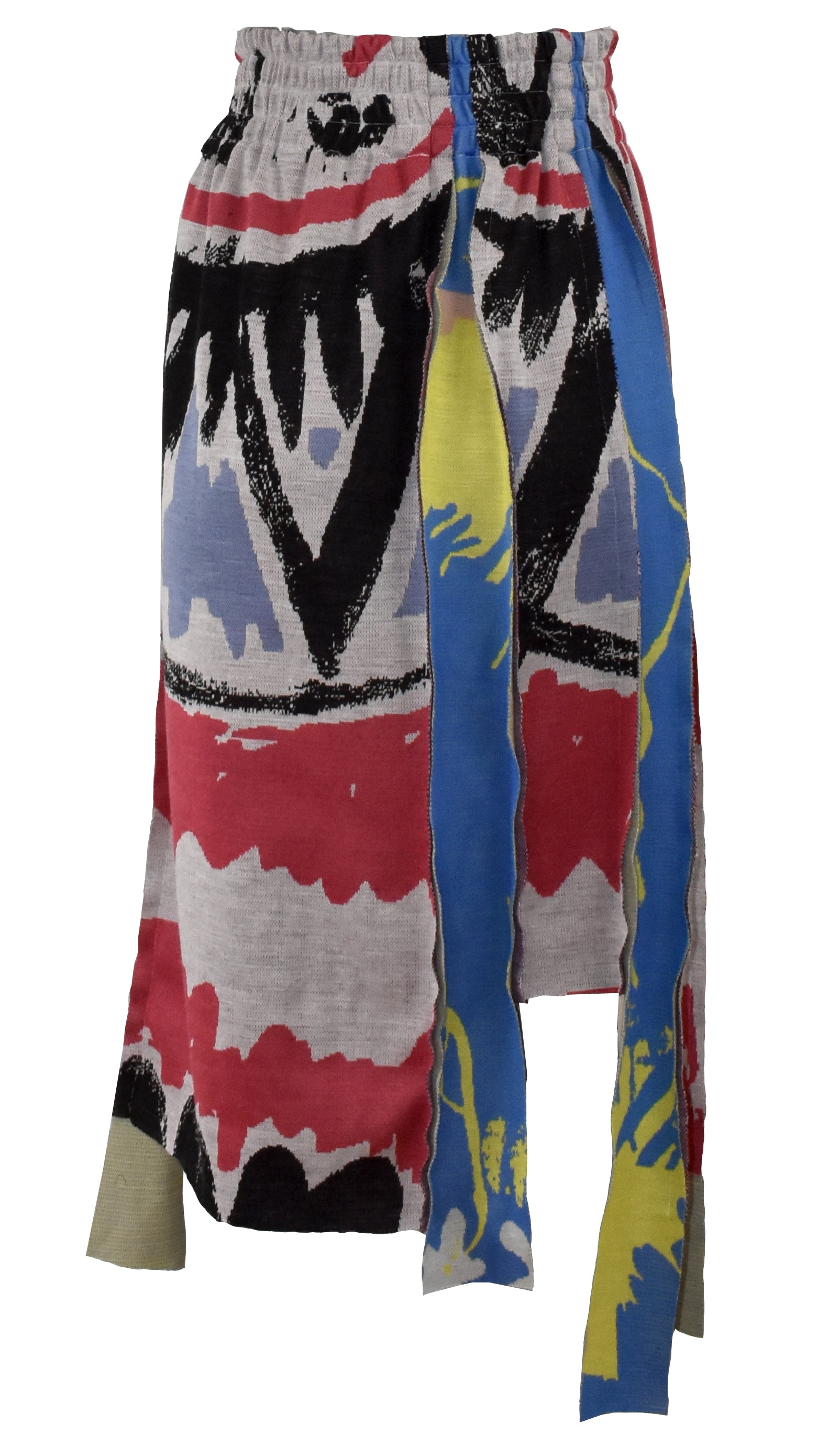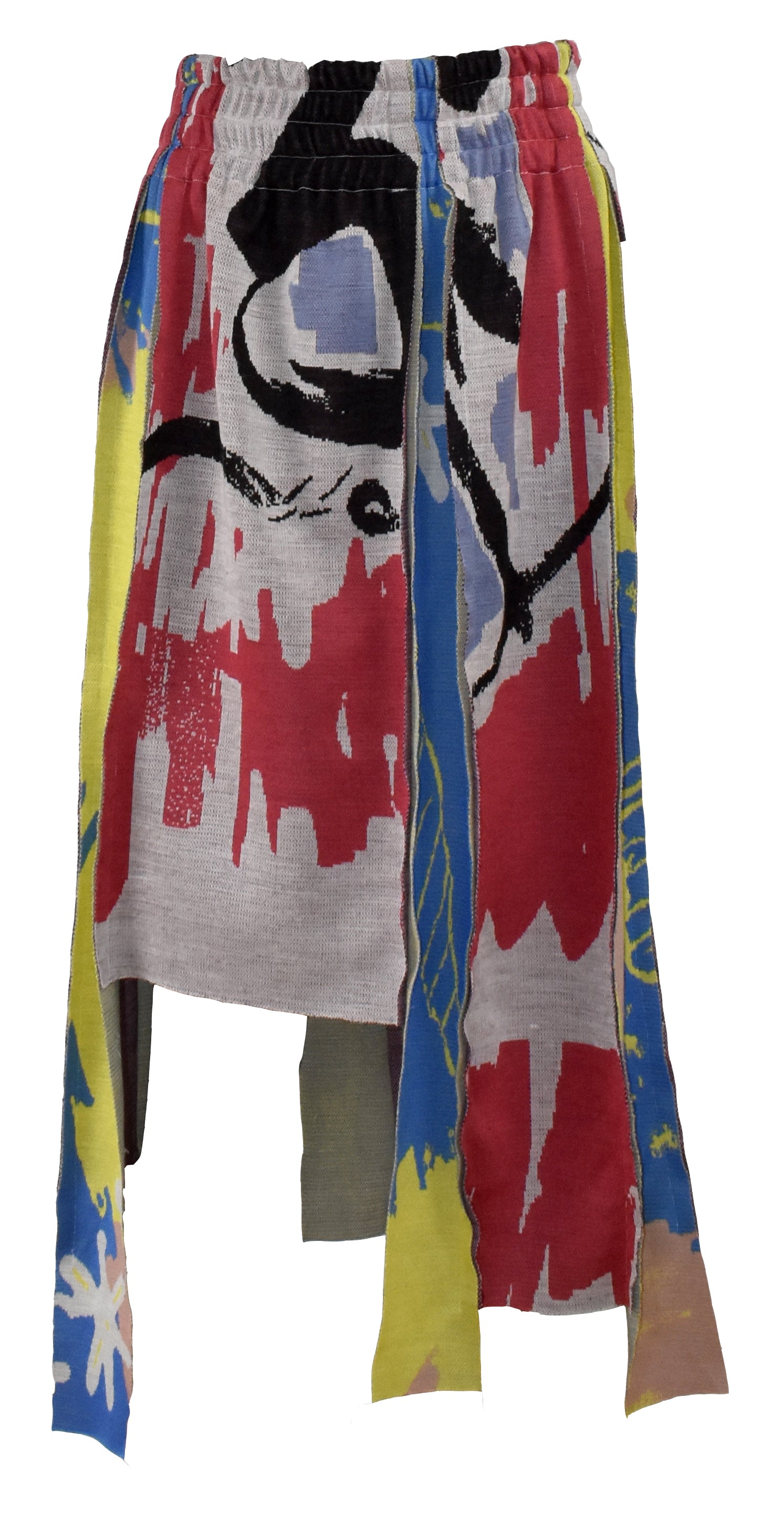 Panelled construction of different jacquard knits with elasticated waistband for comfort.
