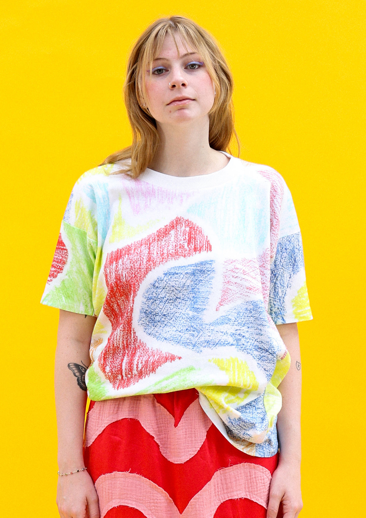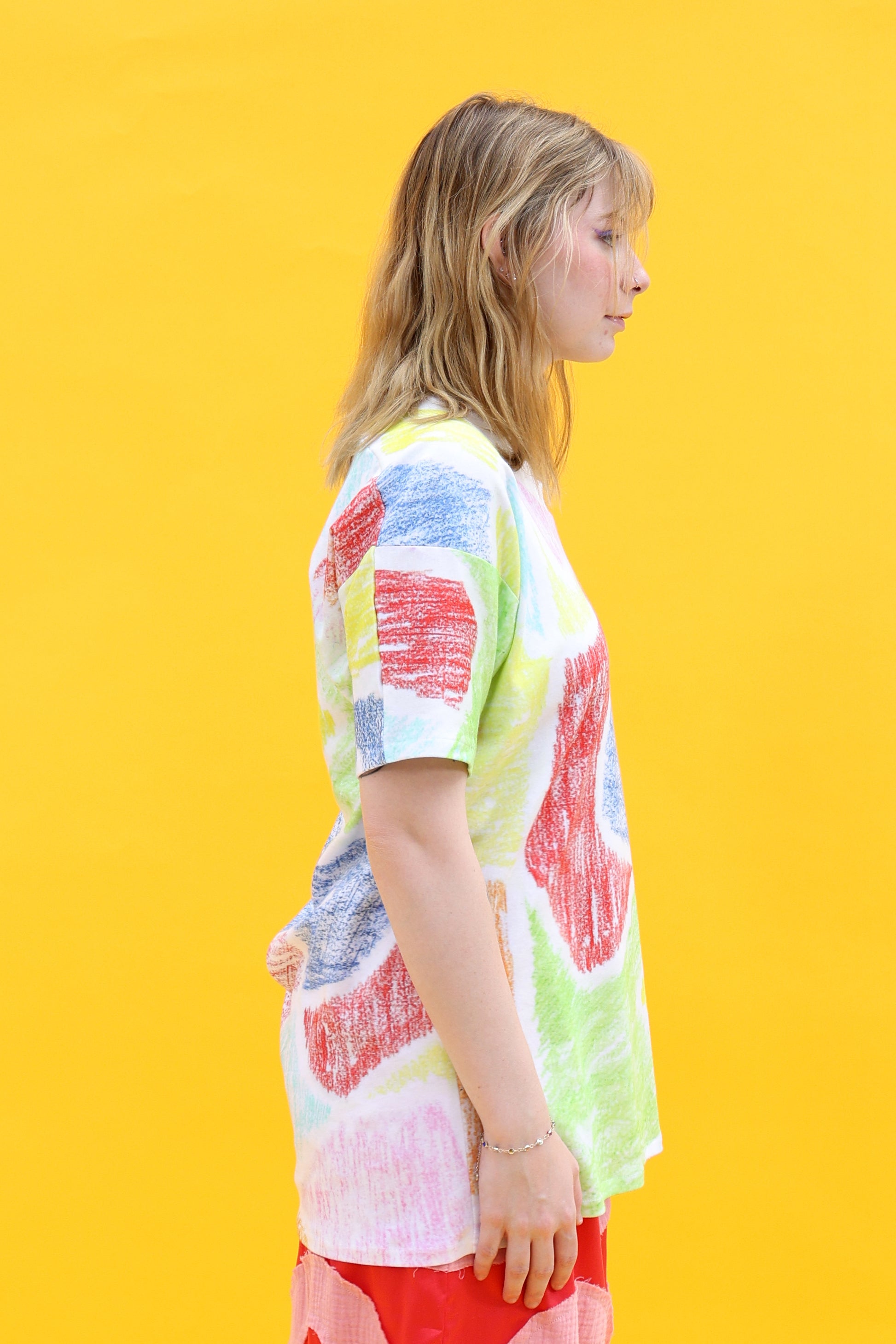 Elevate your casual wardrobe with our Pastel Crayon T-Shirt. Crafted from super soft cotton jersey, this playful top features an abstract crayon print and a ribbed neckline. The slouchy, relaxed construction with a dropped back adds a touch of effortless style to your look. Available now in a variety of colours.