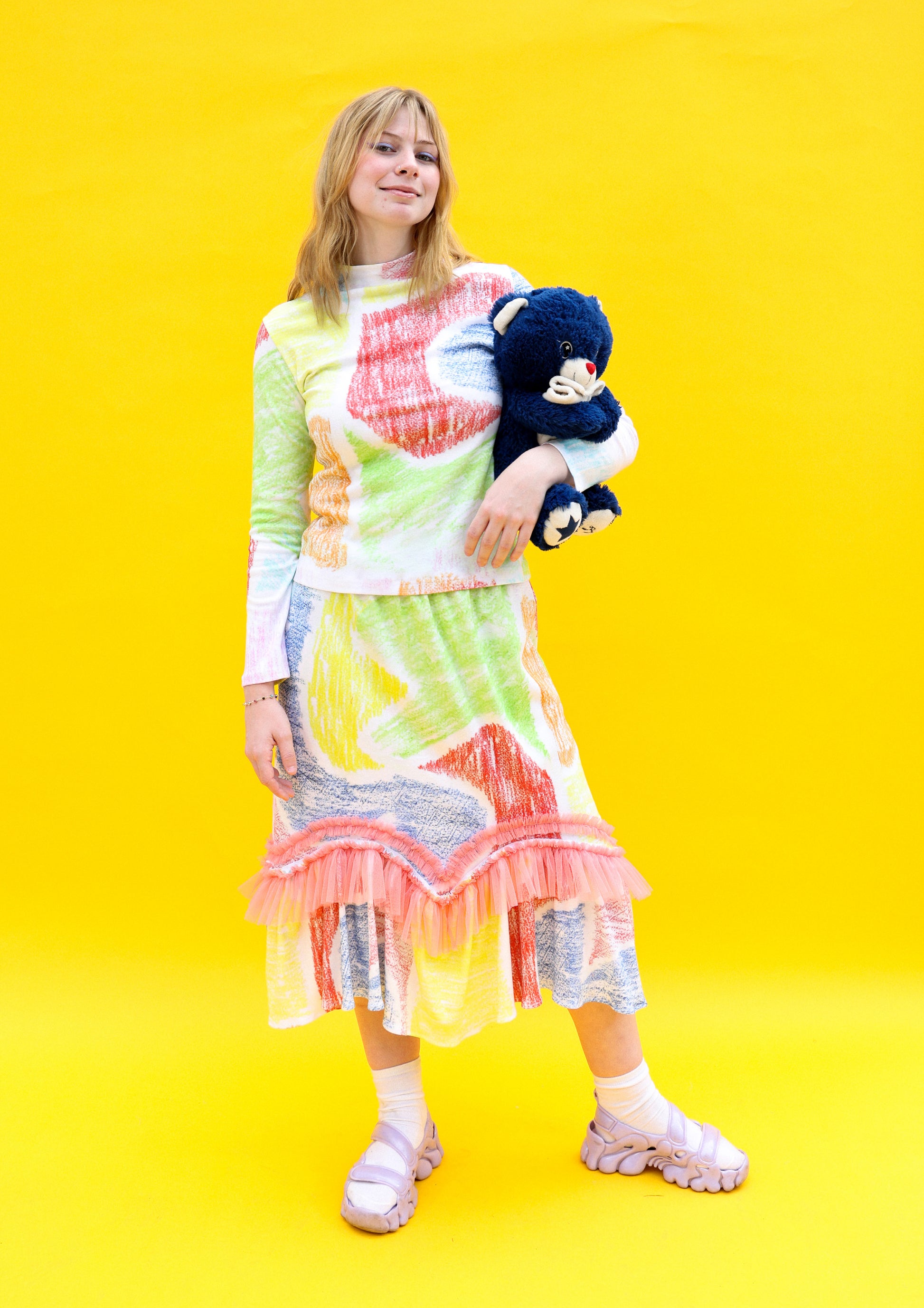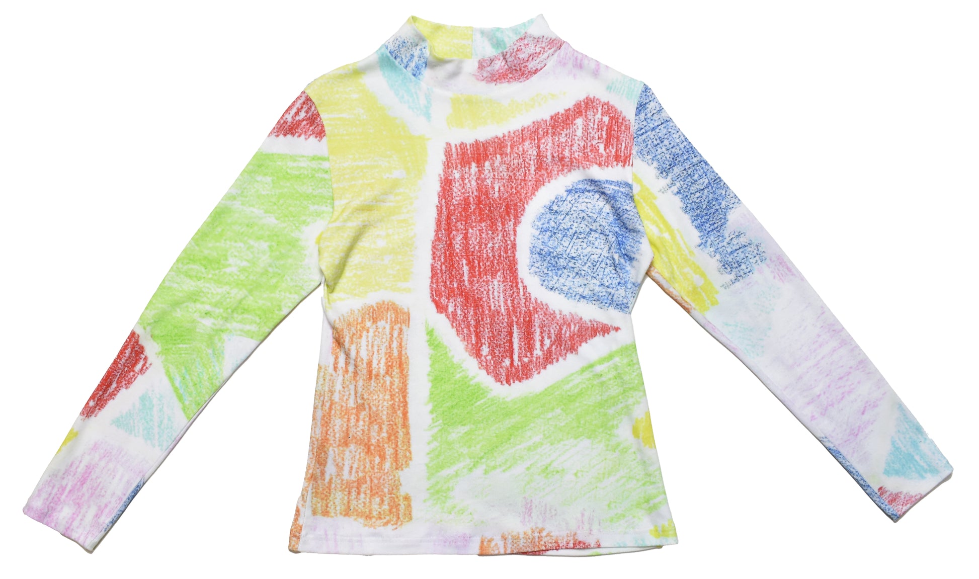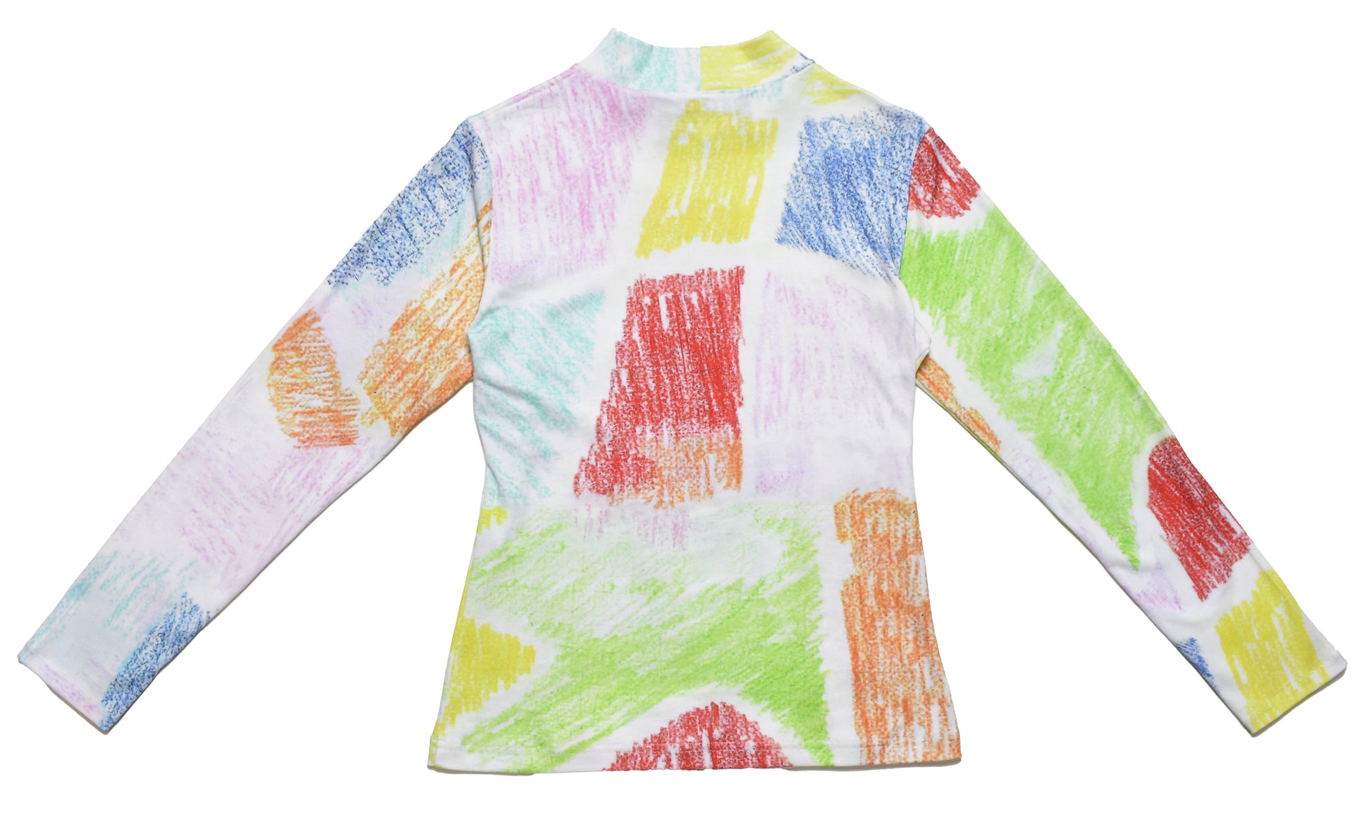 Add a touch of artistic flair to your wardrobe with our Pastel Crayon Top. Featuring a lively crayon print and abstract motif, this versatile and edgy piece can effortlessly elevate any outfit. Made from high-quality cotton jersey, it is both stylish and comfortable. Perfect for the fashion-forward and creative individual.
