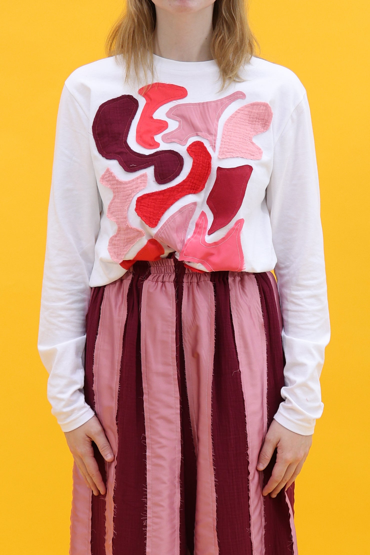 Made from 100% organic cotton, this Red Palette Long Sleeve Top offers a regular fit and stunning applique details in red and pink hues. Experience sustainable fashion without sacrificing style with this expertly-crafted top.