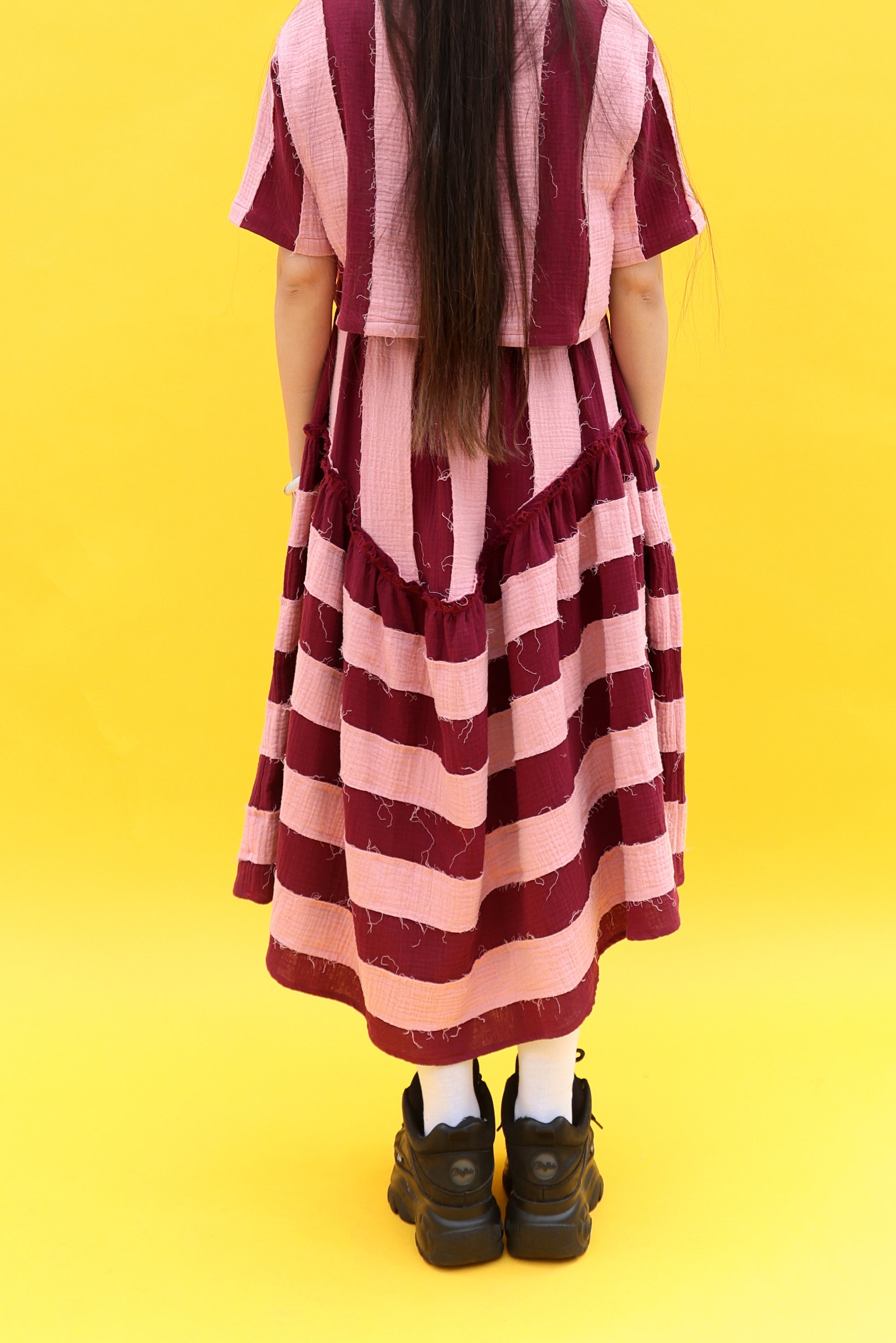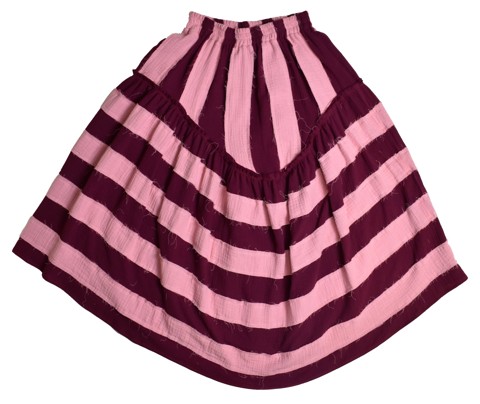 The Ruby Rose Skirt is a must-have for any wardrobe. Great when paired with a simple top or the Ruby Rose Crop Top for a complete, matching look. With its relaxed fit and alternating strips of cotton muslin, this skirt offers both versatility and edginess.